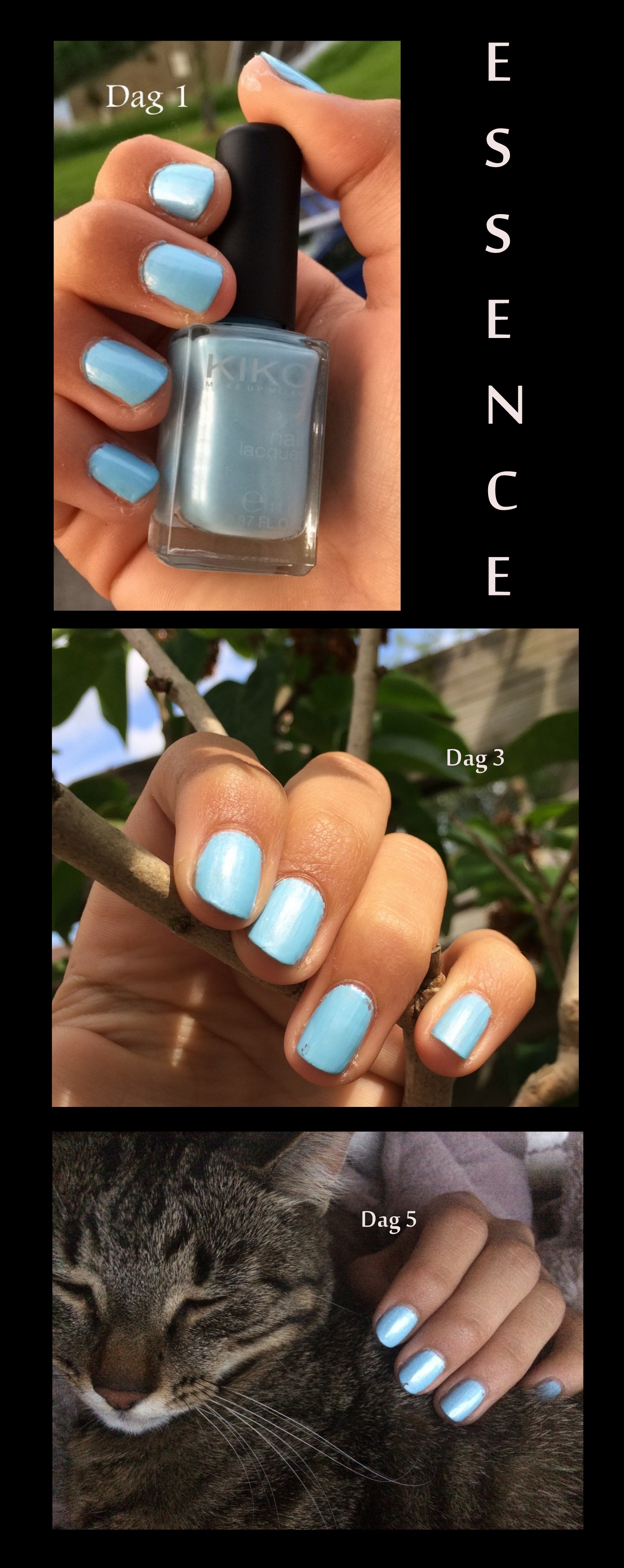 Zoals je ziet zijn we lekker creatief geweest met foto’s nemen haha. Op dag 5 begon de nagellak echt te chippen (zie middelvinger), maar voor de rest zat het er echt nog prima op. Daarnaast heeft Valerie in de dagen dat ze de nagellak droeg een hockeywedstrijd gespeeld, getraind en een feestje gehad. Dus ook onder deze ‘ruigere’ omstandigheden blijft de nagellak relatief lang zitten.