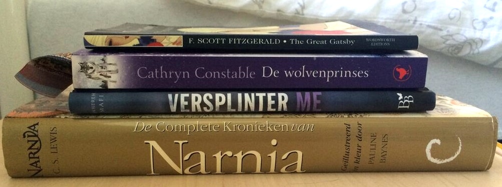 The Great Gatsby en De Wolvenprinses heb ik nog niet uit, maar daar ben ik wel in begonnen. Bij The Great Gatsby ben ik ongeveer op een derde, bij De Wolvenprinses ben ik bij bladzijde zestig. In mijn Monthly Goals heb ik met mezelf afgesproken dat deze boeken voor november uit zijn. Versplinter Me, deel 2,5 van de Touching Juliette serie vond ik helaas een stuk minder leuk, maar las ik wel in een halfuurtje uit. En uit mijn prachtige Narnia-bundel las ik Prins Caspian uit, die ik heel leuk vond (maar de film stiekem leuker).