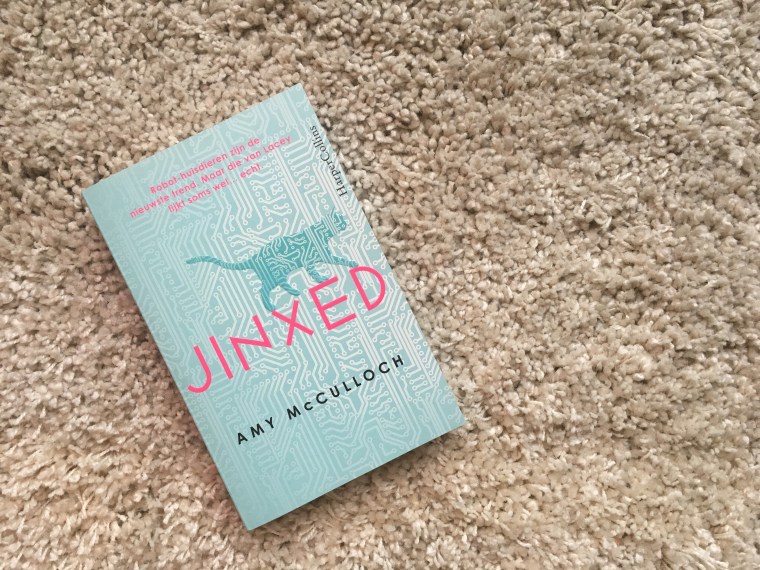 Ik had nog nooit een boek als Jinxed gelezen. Eigenlijk lees ik niet heel vaak boeken waarin high-tech centraal staat, maar Jinxed leek me toch wel erg leuk. In het begin van het boek moest ik erg wennen aan de baku, het robothuisdier wat iedereen altijd bij zich heeft. Er werd opzich wel uitgelegd wat baku’s allemaal konden en hoe ze eruit zagen, maar bij zinnen als ‘Jinx projecteert het lokaal waar ik heen moet op zijn staart’ kon ik me toch niet helemaal inbeelden hoe dat er dan uit zag.